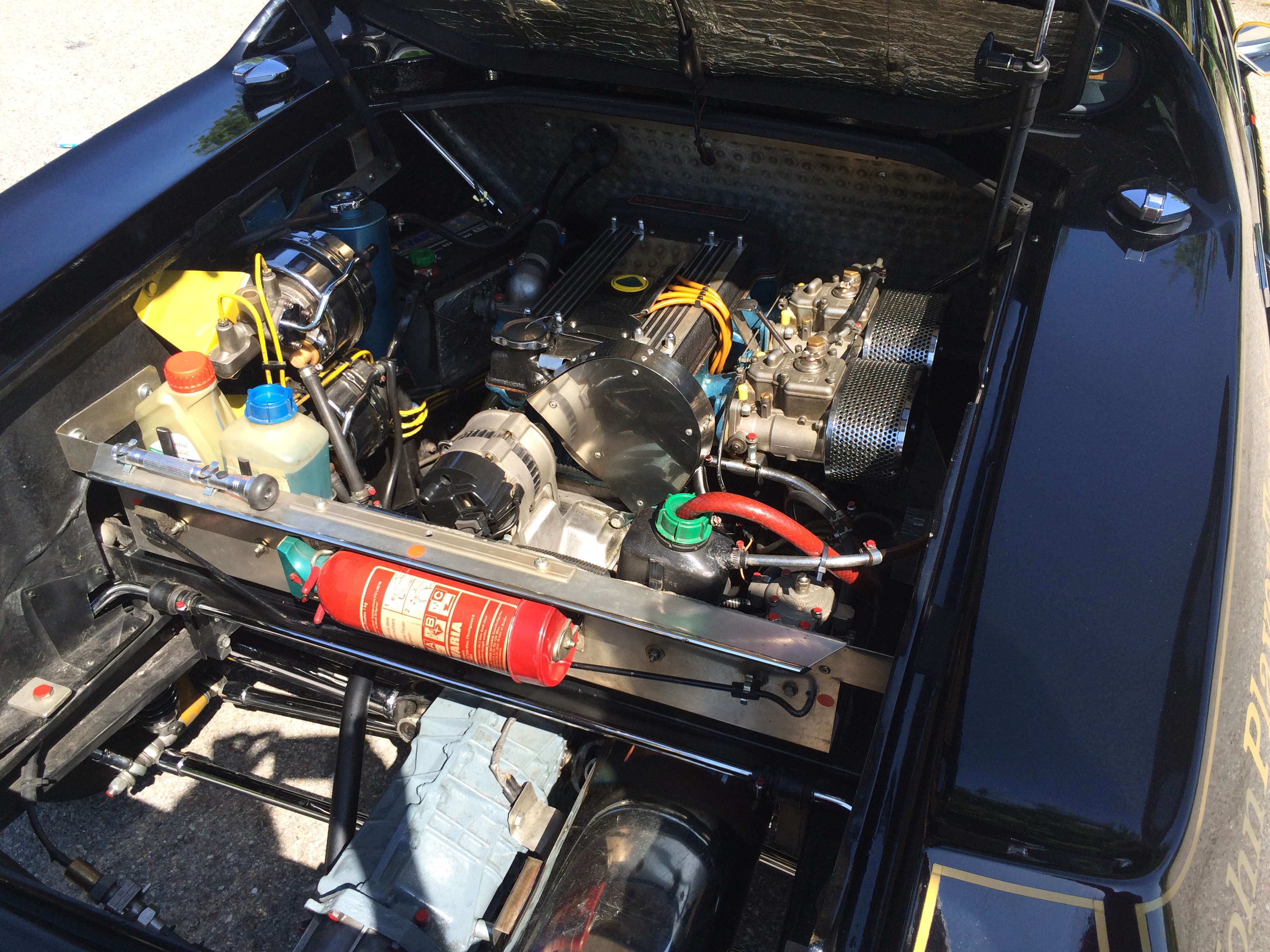 IMG_3736Doch dieses Fahrzeug lebt nicht nur von der glänzenden Optik – auch die technischen Leckerbissen treiben jedem Lotus-Fan die Freudentränen in die Augen. Ein von Cosworth getunter 1600er Reihen-Vierender (Basis: Ford-Kent-Motor) mit zwei obenliegenden Nockenwellen und zwei Doppelvergasern stemmen ca. 180 PS (!) auf die Hinterräder – fein sortiert über ein 5-Gang Getriebe, das hinter dem Mittelmotor angeflanscht ist.
