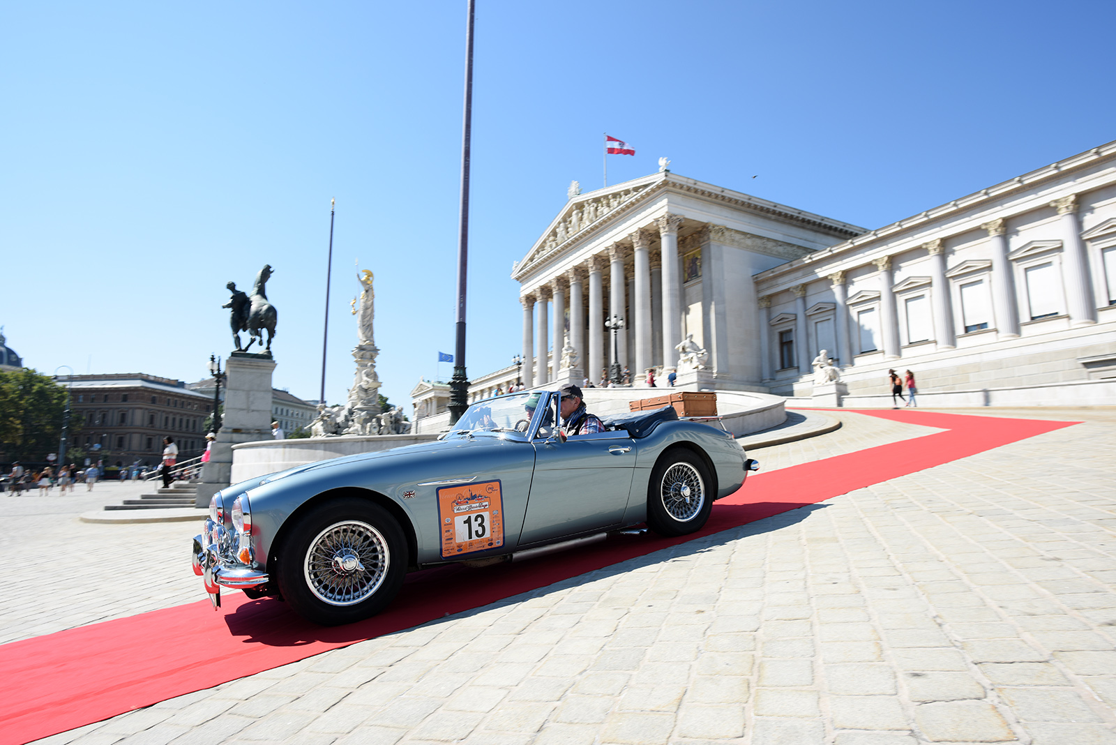 Oldtimerpräsentation, Boxenstrasse, Vintage-Meile, VIP-Lounge, herrliche Strecke durch Wien, Gastfreundschaft bei den Etappenzielen und bei der Fahrt über die Hausberge der Höhenstrasse von Grinzing über Kahlenberg und Leopoldsberg.