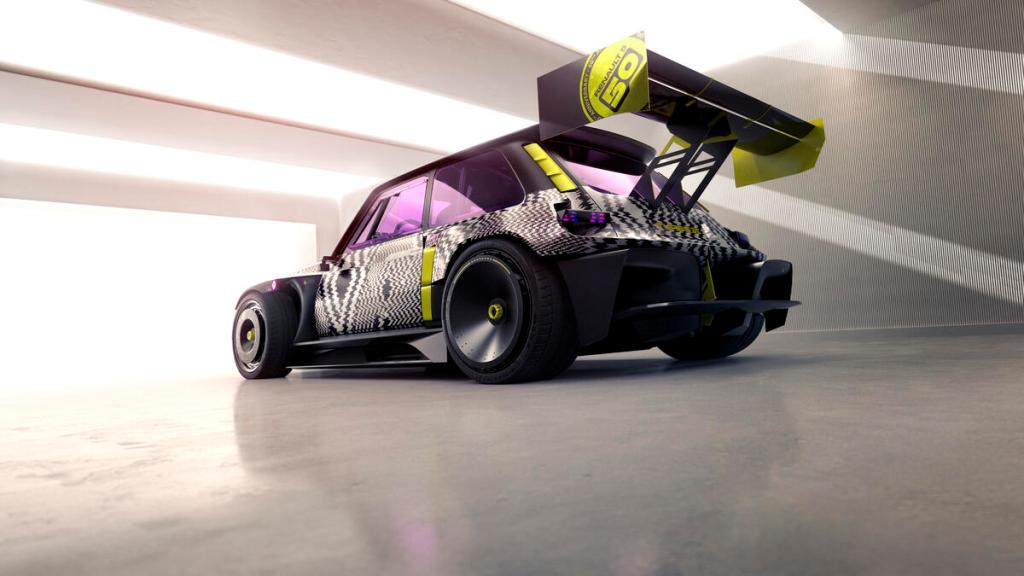 Keineswegs nostalgisch ist der ebenfalls an den Renault 5 Turbo 2 erinnernde Lufteinlass auf der Motorhaube – er beherbergt die Ladebuchse für die leistungsstarke Batterie. Durchsichtige Karosserieteile – unter anderem über den Rückleuchten – erlauben den unverstellten Blick auf die Antriebstechnik des Showcars.