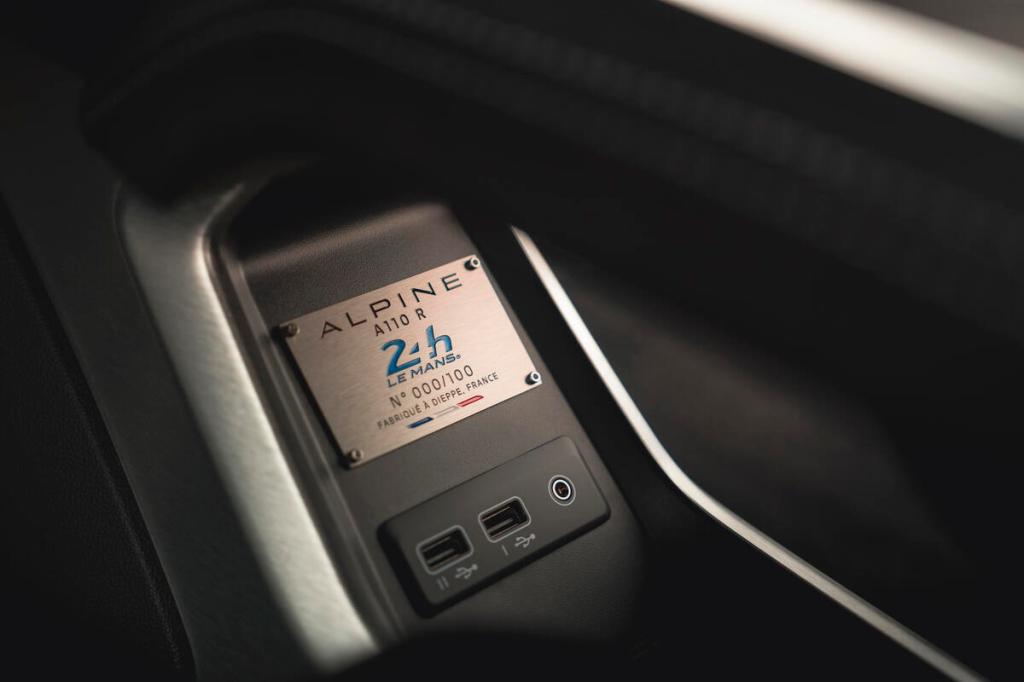 Die offizielle Signatur des 24-Stunden-Rennens von Le Mans findet sich auf Frontspoiler, Seitenschwellern und auf den Schalensitzen wieder. Selbstverständlich darf auch eine numerierte Plakette aus dem Werk Dieppe nicht fehlen.