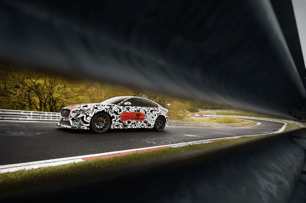 Jaguar Land Rover SVO (Special Vehicle Operations) kündigt an: den stärksten, agilsten und extremsten Performance Jaguar aller Zeiten. der Jaguar XE SV Project 8 – neu und straßenzugelassen. Ein Prototyp des über 600 PS starken Kraftlackels macht dieser Tage bei Testfahrten die Nürburgring Nordschleife unsicher. Die Tarnbemalung: eigens von der SVO Designabteilung entworfen.