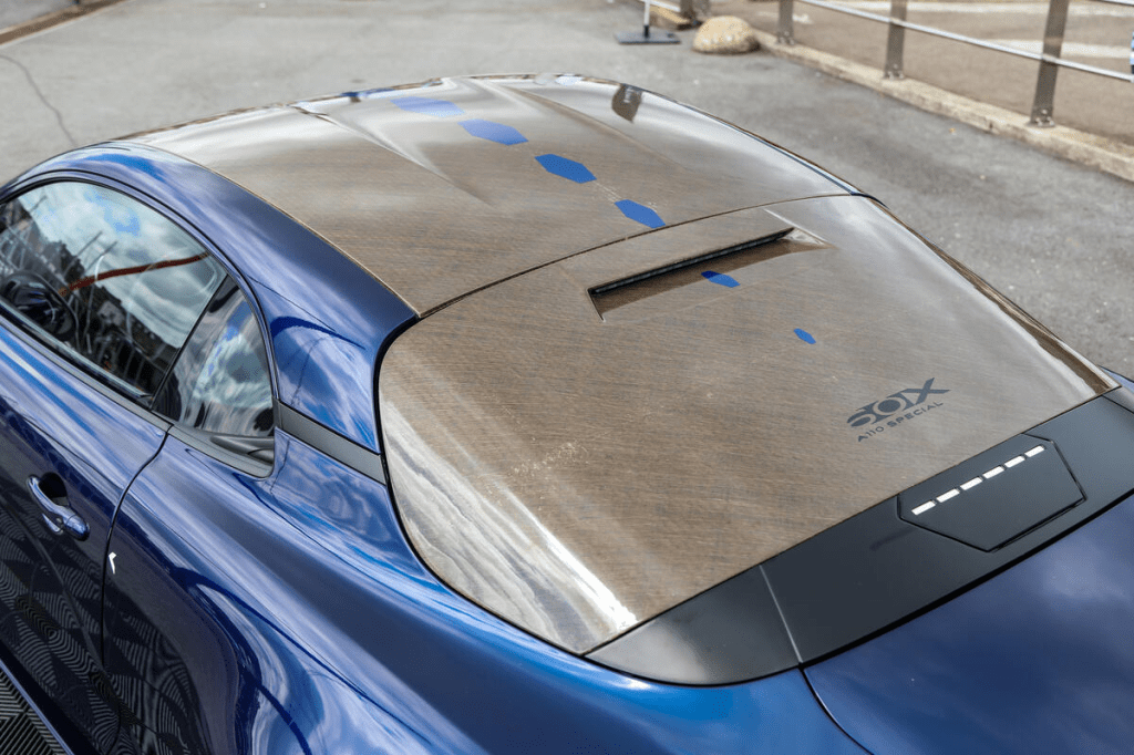 Doch wie wird daraus eine Motorhaube, eine Sitzschale oder ein Dach? Das Alpine Labor in Les Ulis, südwestlich von Paris, kombiniert das getrocknete Gewebe mit Baumwollgarn und webt daraus ein biaxiales (45-Grad) Muster. Der zu 95 Prozent aus Leinen und zu fünf Prozent aus Baumwolle bestehende Stoff wird anschließend in Epoxidharz getränkt und anschließend in Form gelegt.