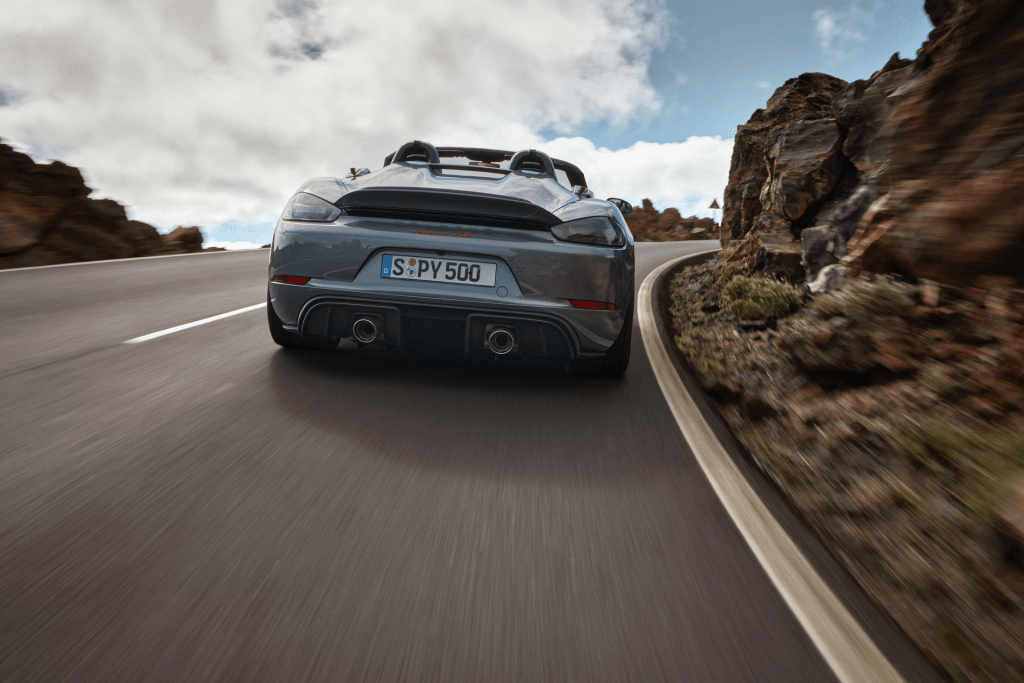 Der aus dem Porsche 911 GT3 bestens bekannte 4-Liter 6-Zylinder Hochdrehzahl-Saugboxer kommt nun im 718 Spyder RS als Mittelmotor zum Einsatz. Die Kraft wird über ein kurz übersetztes 7-Gang-Doppelkupplungsgetriebe auf die Hinterräder übertragen. In dieser Konfiguration leistet das Triebwerk um 80 PS mehr und der Spyder RS positioniert sich somit als schnellster offener 718er aller Zeiten.