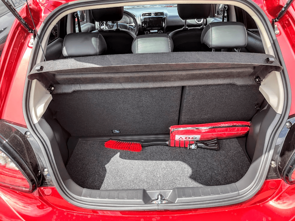 Neben der o.a. Metallic-Lackierung und dem CVT-Antrieb wartet unser Test-Space Star noch mit Mittelarmlehen, Kunstleder, nettem Design, Klimaanlage, Apple CarPlay bzw. Android Auto, Sitzheizung, Assistenzsystemen, Alufelgen, etc. auf.