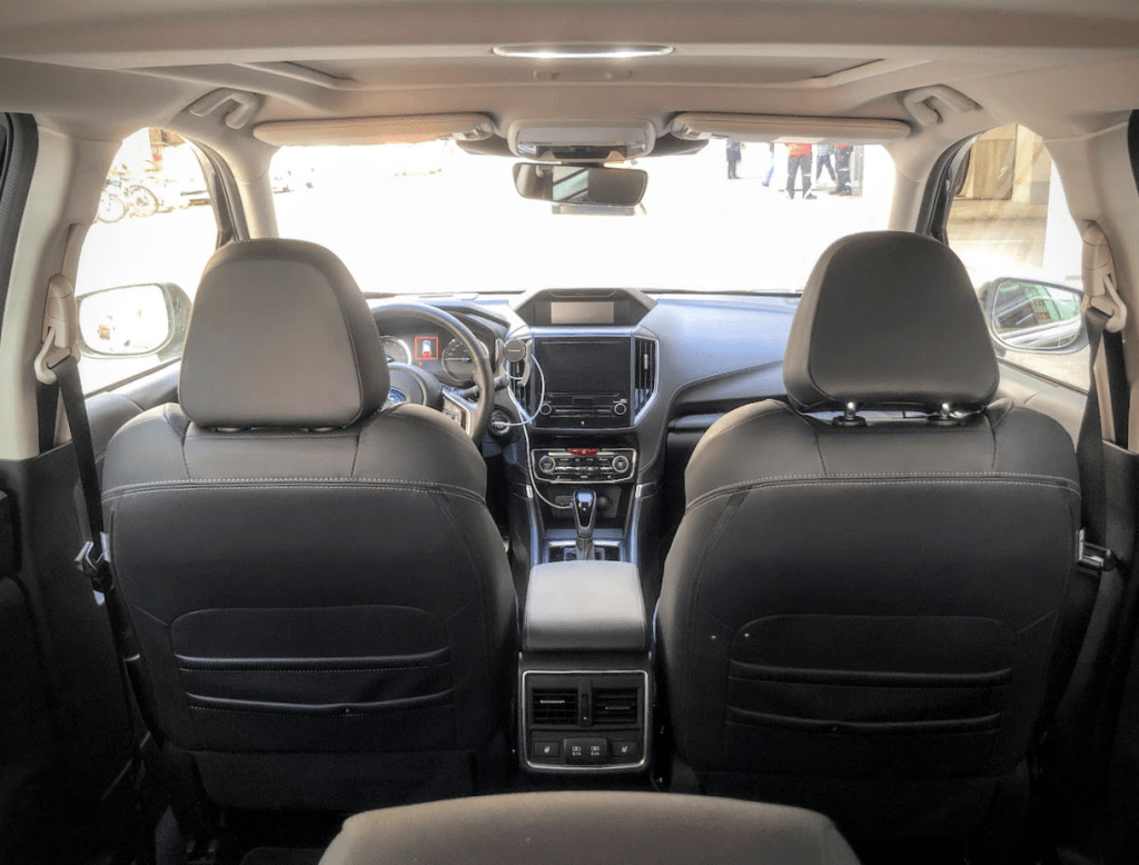 Seitlich arbeitet Subaru mit einem kleinen Kniff – die Türverkleidungen sind nach außen gewölbt und geben deinem Ellenbogen Raum zur Entfaltung. Gepaart mit der Mittelarmlehne zwischen den Vordersitzen ergibt sich daraus eine entspannte Reisesitzposition für weite Strecken.