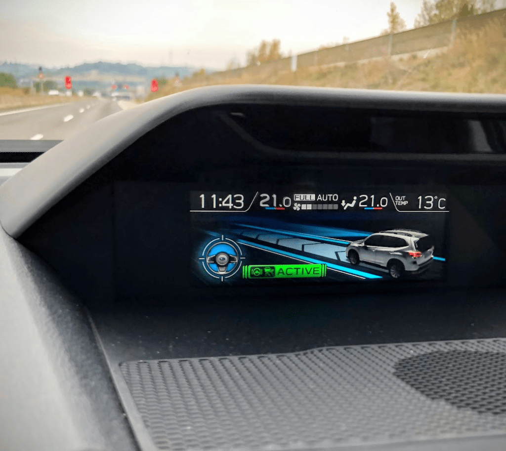 Unser Testfahrzeug war mit dem 2-Liter Boxermotor ausgestattet, kombiniert mit einem kleinen E-Motor, der beim Beschleunigen einen zusätzlichen Boost bietet. Wir sprechen hier von einem mHEV-Antrieb (mild hybrid electric vehicle). Zwischen dem Motor und den vier angetriebenen Rädern lauert ein stufenlos agierendes CVT-Getriebe, das bei Bedarf sieben Gänge simulieren kann.