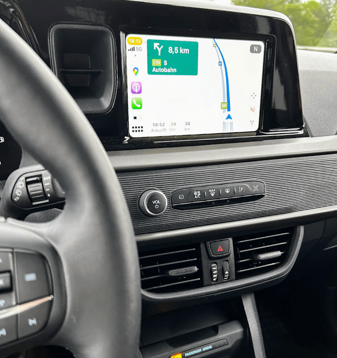 Mit dem 8-Zoll-Touchscreen und der vorhandenen Konnektivität passt auch die Vernetzung. Apple CarPlay bzw. Android Auto sind vorhanden und über Bluetooth oder USB-Kabel zu nutzen.