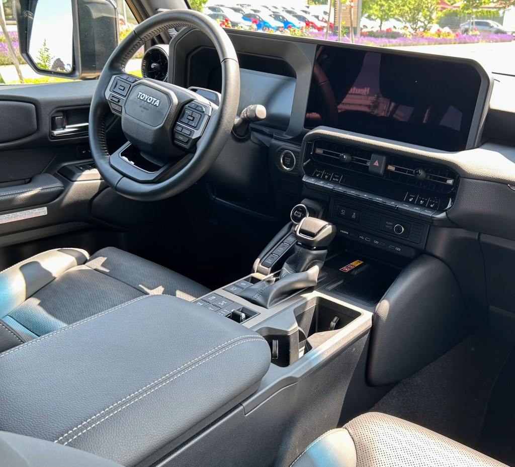 Robuste, hochwertige Materialien in toyotatypisch exzellenter Verarbeitungsqualität – kein übertriebener Luxus, sondern ehrliche Handwerkskunst. Hättest du hier ein minimalistisches Cockpit erwartet? Da wirst du überrascht sein: Knöpfe, Schalter und Displays füllen das Armaturenbrett wie ein Flugzeugcockpit. Und das Beste: Alles funktioniert intuitiv.