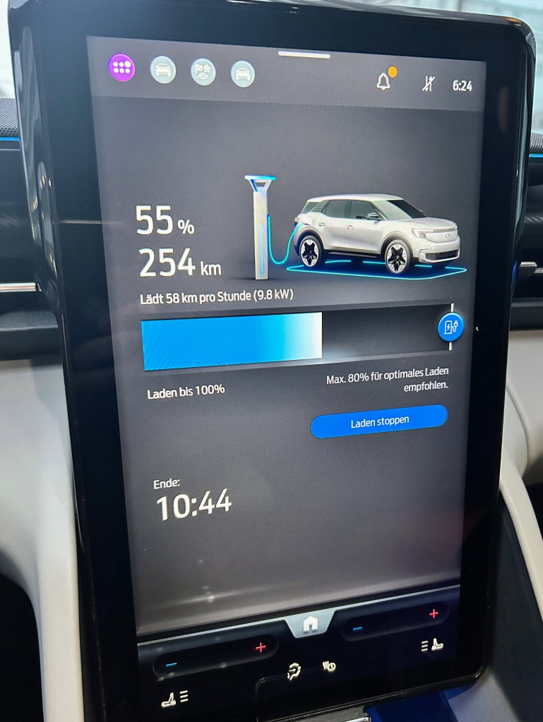 Die Reichweite von 440 km ermöglicht es, auch etwas längere Strecken ohne lästige Tank-Zwischenstopps zurückzulegen. Und dank der Schnellladefunktion ist die Batterie in nur 26 Minuten wieder zu 80 % aufgeladen, sagt Ford. Und ja, das kommt auch in der Praxis so hin.