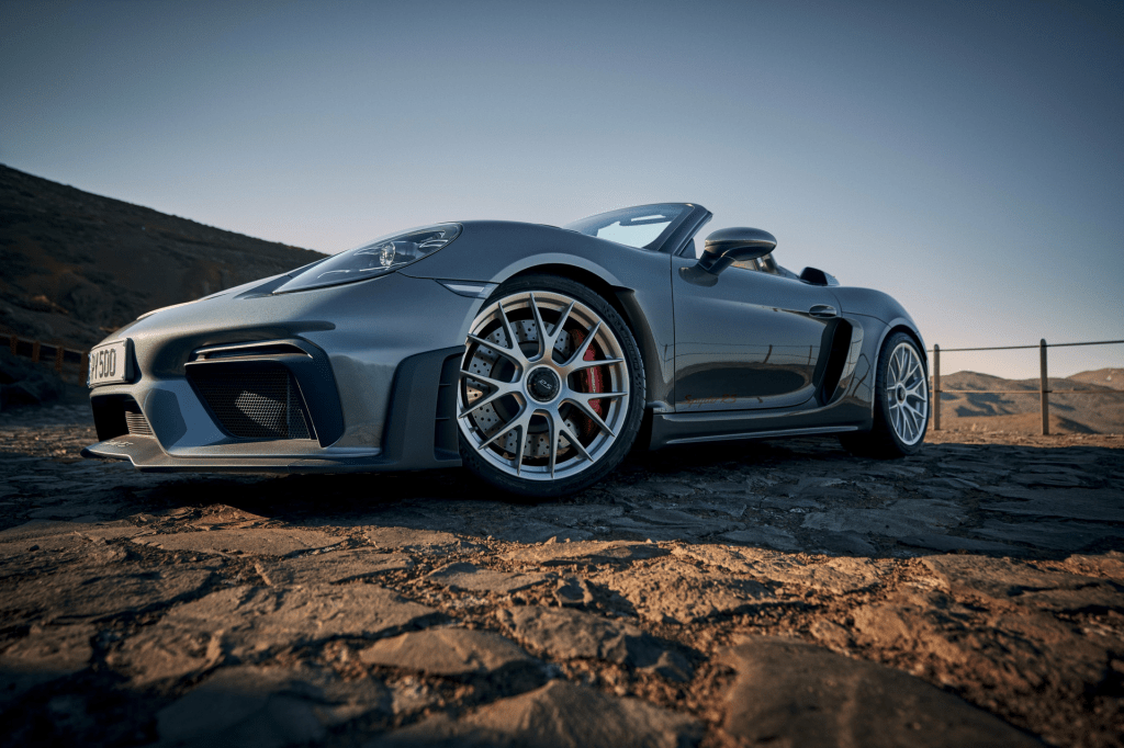 Der aus dem Porsche 911 GT3 bestens bekannte 4-Liter 6-Zylinder Hochdrehzahl-Saugboxer kommt nun im 718 Spyder RS als Mittelmotor zum Einsatz. Die Kraft wird über ein kurz übersetztes 7-Gang-Doppelkupplungsgetriebe auf die Hinterräder übertragen. In dieser Konfiguration leistet das Triebwerk um 80 PS mehr und der Spyder RS positioniert sich somit als schnellster offener 718er aller Zeiten.